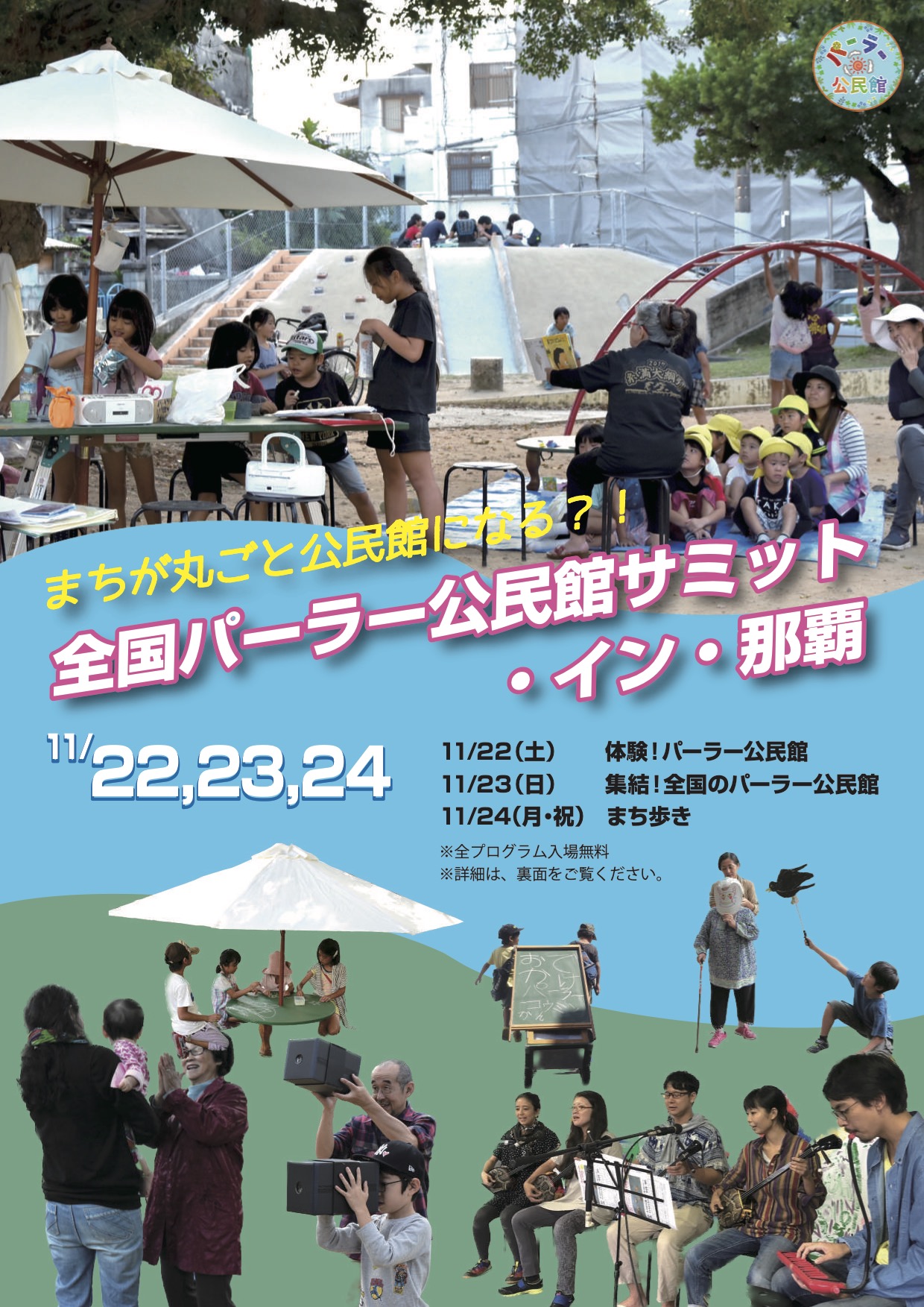 このたび、各地で展開されている移動型・屋台型の公民館の実践を共有し、交流する機会として、「全国パーラー公民館サミット・イン・那覇」を開催することとなりました。