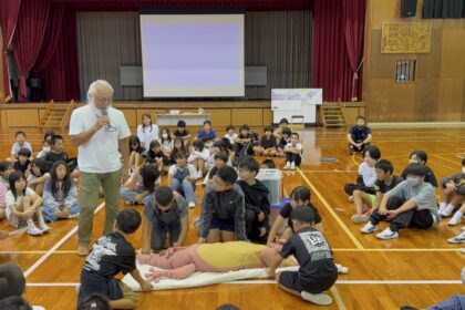 11月5日(水)、恩納村立山田小学校で避難訓練が行われました。 この日は、避難訓練として**日本各地で被災地支援活動を行っている「あーりーさん」による講話、そして子どもたちが楽しく防災を学べるように、「リッカ!ヤールーキ...